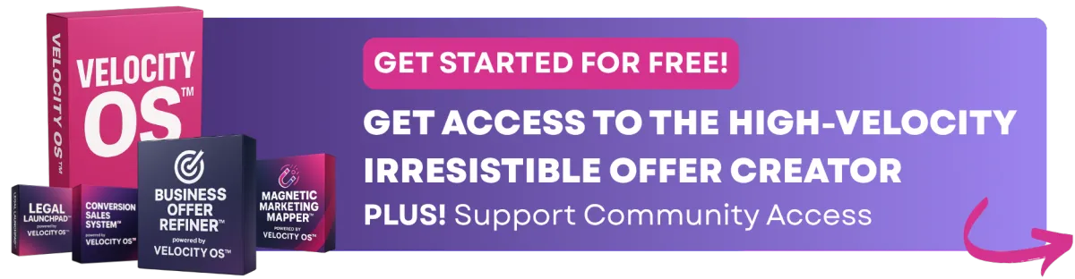 Sign up at highvelocitystartups.com/velocity-os, complete the Business Offer Refiner™, then book your first Offer Review Session.